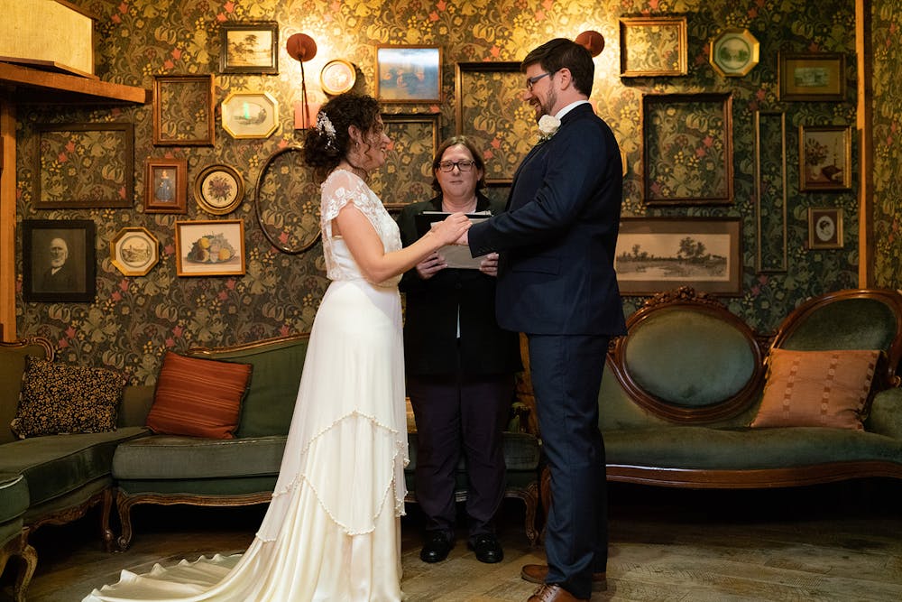 Piril and Dave hosted their unique, modern and fun wedding celebration in the back bar at Young Joni. The evening began with an intimate ceremony surrounded by their nearest and dearest, followed by a rollicking good-time reception featuring their favorite Young Joni pizzas and dishes, the back bar’s signature cocktails, and music playing on the vintage reel-to-reel tape player. We talked with Piril about their experience and learned what they loved most about their Young Joni wedding.